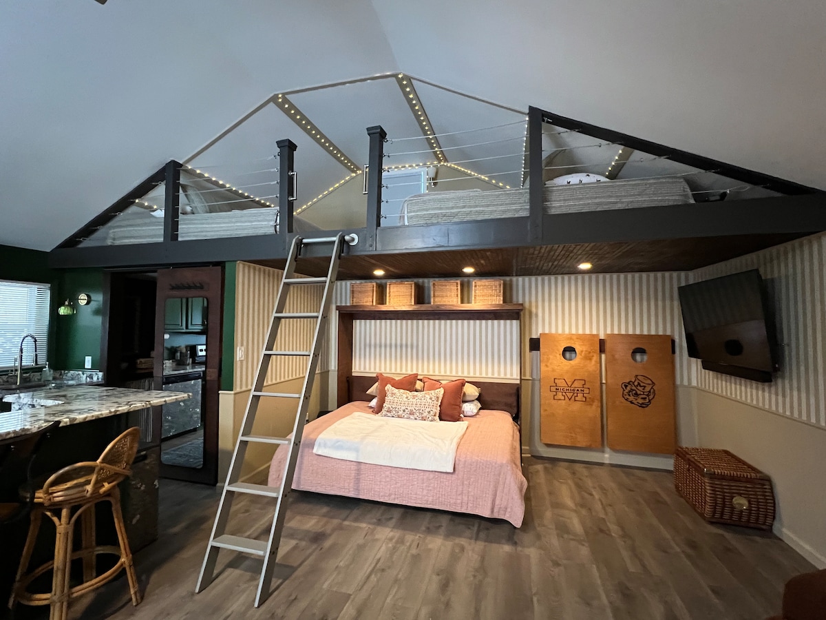 This modern, upscale rental, just steps from The Big House, is ready to host your group for your next visit to Michigan Stadium. With space for 8+ guests, and convenient access to the Stadium, downtown, and campus, The Garage Mahal has everything you need to access and enjoy your visit to Ann Arbor in style! Whether you're in town for a UofM home football game, the Ann Arbor Art Fair, Commencement ceremonies, or just a relaxing vacation, this spot is the PERFECT place to stay in style & comfort.