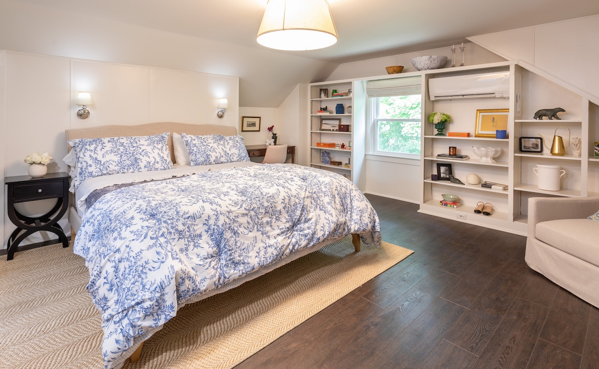 Newly built, spotless and perfectly located Ann Arbor Guest House- detached apartment with private entrance. Main bedroom suite with new mattress and quality linen. Bathroom with walk-in shower. Kitchen is fully equipped with high-end appliances. Enjoy the cozy upstairs loft area for watching tv or extra sleeping space. Area is set up with a 56in TV, sleeper sofa and 'CordaRoy' chair (as seen on Shark Tank) that turns into a king sized bed. Washer and dryer in unit.