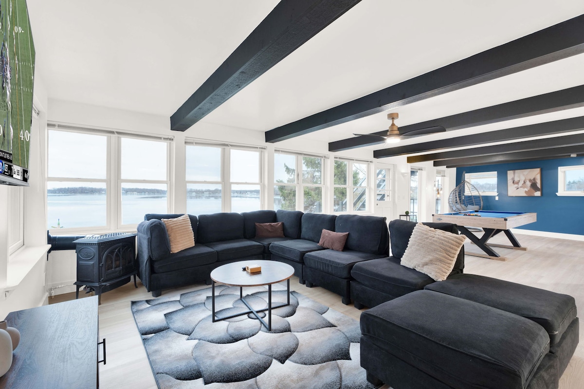 Experience life on the water. With floor-to-ceiling windows spanning the entire front of the house, you get 270-degree panoramic views of Base Line Lake and the Huron River from almost every room. Unlike many cramped lake cottages, this 2,000 sq ft home sits on a massive double lot (1.75 lots), giving you a huge side yard for lawn games and a fire pit just steps from the water. Perfect for large families, U of M weekends, or a relaxing group retreat.