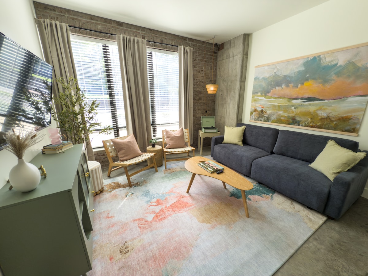 Experience a thoughtfully designed apartment by acclaimed local artist Beth Kelly. Right in the heart of East Nashville, it is only a 6min walk to Mas Tacos, The Legendary Pharmacy, Lyra & more local gems. Enjoy coffee at Scratch Bakery, essentials at Publix, dine at Pelican & Pig– Endless delights are just steps away! Only 5 min uber to vibrant 5 Points, 7 min to DT and Broadway! Immerse in art, culture & flavors, then spin records on a vintage 1964 Zenith console & in your private haven!