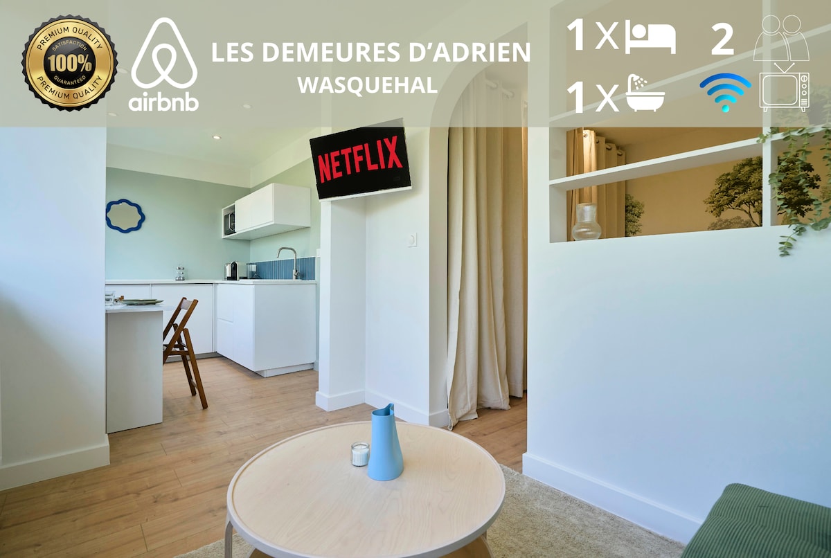 ⸻ Studio lumineux et rénové, parfait pour vos séjours professionnels ou touristiques à Lille. Deux grandes baies vitrées s’ouvrent sur une terrasse agréable. Literie de qualité, cuisine équipée, cafetière Nespresso, salle de bains/baignoire, TV et Wifi. Le logement dispose d’un parking sécurisé. Le centre de Lille est à 8 mn en voiture, avec un accès rapide aux grands axes. Il est aussi très bien desservi par le tramway, à 2 mn à pied. Supermarché Monoprix à 600m, ouvert jusqu’à 21:00.