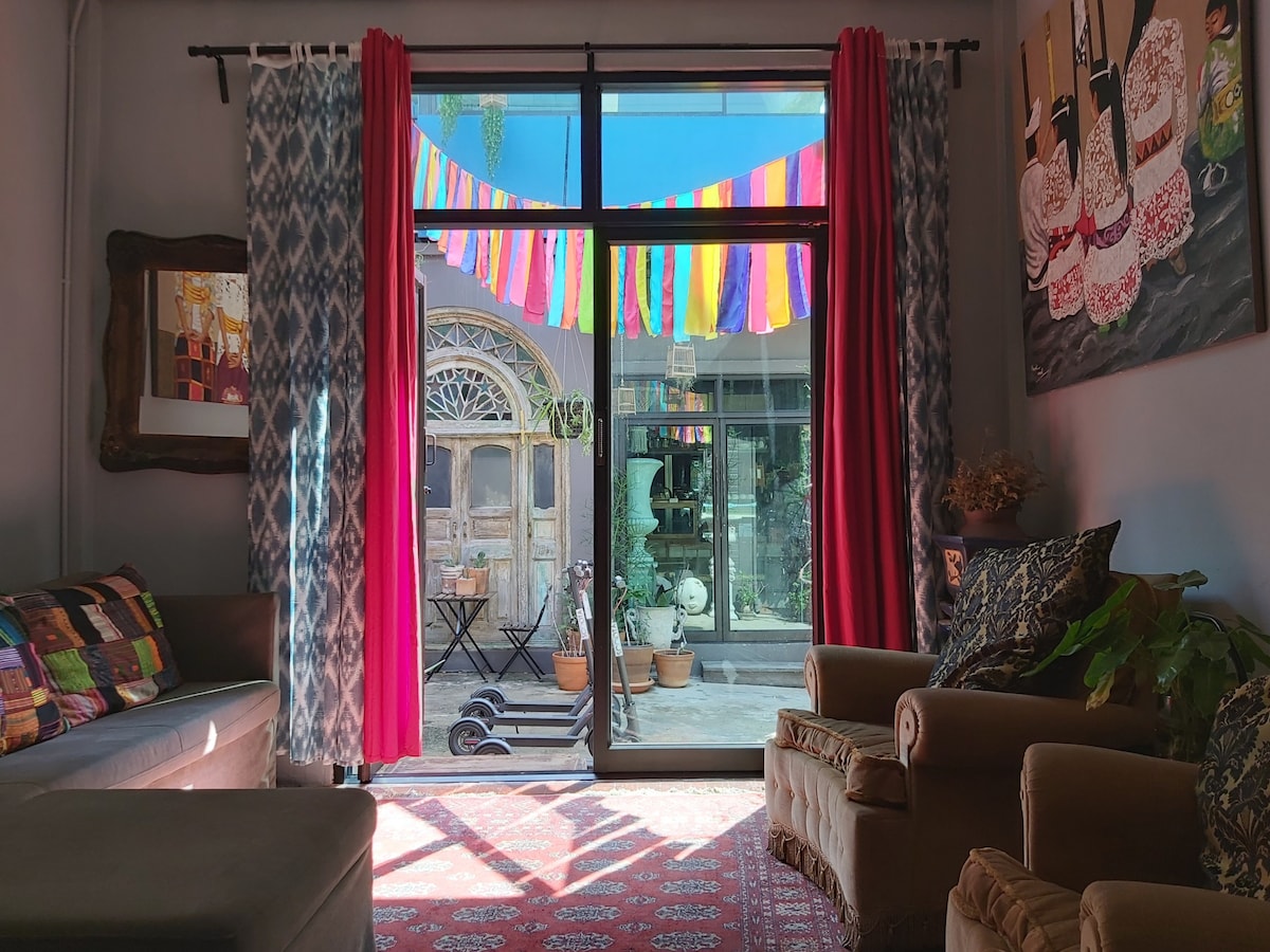 Stay in a charming 130-year-old shophouse, beautifully renovated with an eclectic design that preserves its historic soul. Located in the same prime area as Bangkok’s top 5-star hotels, proof of how great the location really is. Step outside to find local street food, trendy bars, and popular cafés. Just a 3-minute walk to the BTS skytrain and central tourist boat pier, making it easy to explore the city. A unique stay full of character, comfort, and unbeatable convenience.