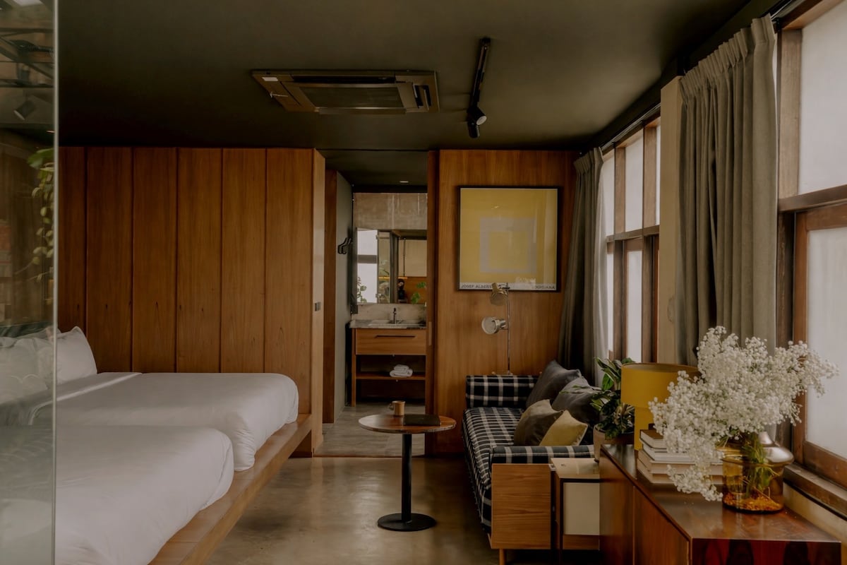 ☆ Welcome to your creative suite retreat in Bangkok ☆ Stay in a thoughtfully designed suite overlooking the peaceful Ong Ang Canal, just a 3-minute walk from Sam Yot MRT. This quiet space blends vintage charm with minimalist, modern design. Created by our family of architects, Poco House sits just above our local-loved café, Piccolo Vicolo. Thoughtfully renovated with warm wood, concrete textures, and greenery, it’s a calm escape in the heart of Bangkok’s historic Phra Nakhon district.