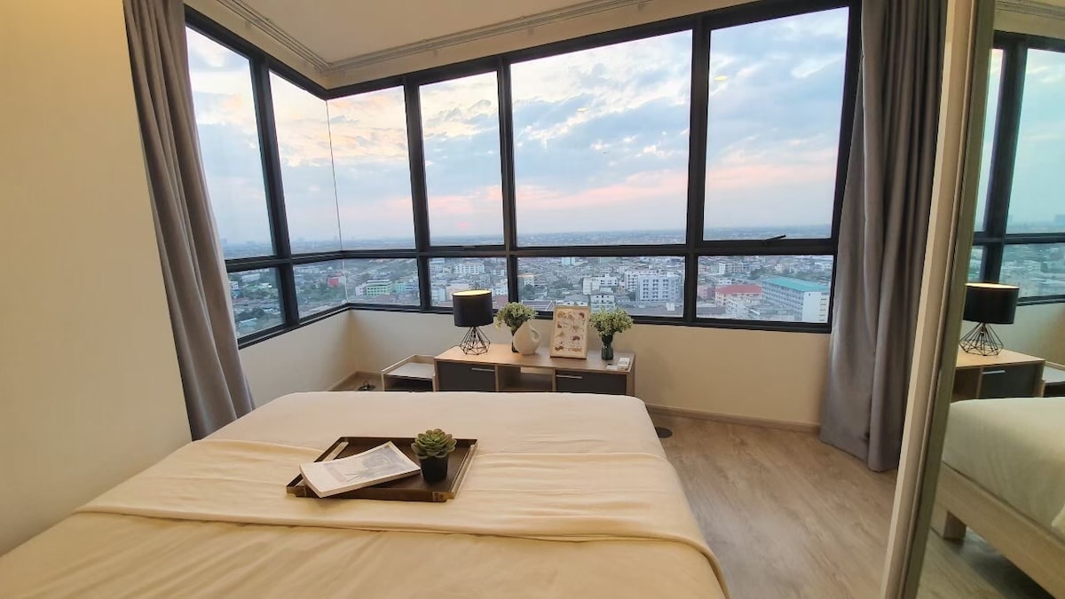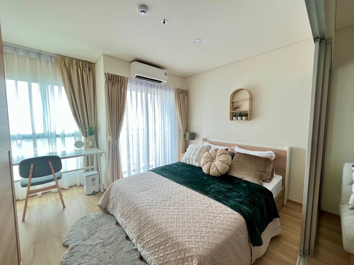 曼谷市中心轻奢公寓/10分钟到轻轨站/贵妇商圈/购物天堂/舒适一房一厅套房/巴士东站