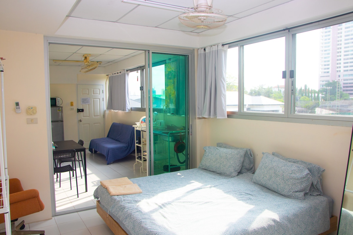 -40 sqm one bedroom with kitchen+washing machine at Bangkok Tryp Building -Not suitable for a child -Non Smoking/ No Cannabis -Near BTS N4 Sanampao, exit#3 (7 minute walk) -Living room with sofa/ private bathroom with shower, hairdryer, toiletries and towels -Air-con/Wifi/ TV/Safety deposit box -Free Luggage storage/ 24 hour Security -Easy check in & check out/ Free parking space -Swimming pool & Fitness *Apartments are on 2-4 floor, corner or middle units (depends on availability)