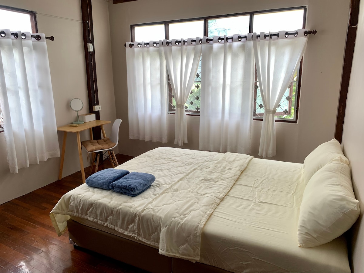 Our beautiful villa is a perfect getaway for family and friends. It is equipped with air conditioners, kitchen, work desk, private swimming pool and large green garden. Our family as architects built this place as a holiday home. And now, we want to share it with anyone to come and enjoy their time in Chiangmai. The home is located by the riverbank of a local neighbourhood. We would be more than delighted to have you, you friends and family over at Baan Thip Villa. For more details read below: