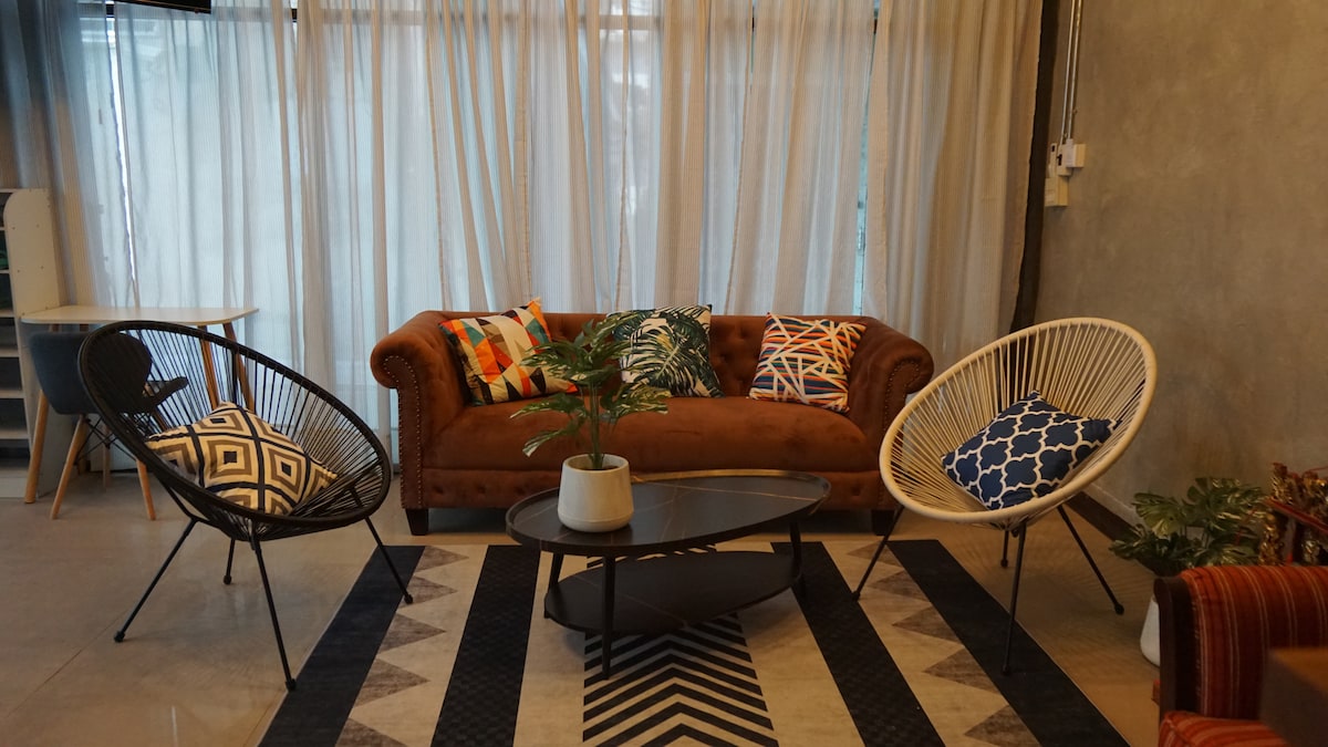 Nila Apartment402 is newly renovated and suitable for family or group of friends up to 4 members. The room is spacious and come with 50" smart TV with NETFLIX and Disney+ for guests to enjoy after a long day. The rain shower, bathtub and bathroom are seperated to easily accomodated 4 guests. There are small pantry with microwave and coffee machine provided in the room. Electric Stove and utensiles can be requested.