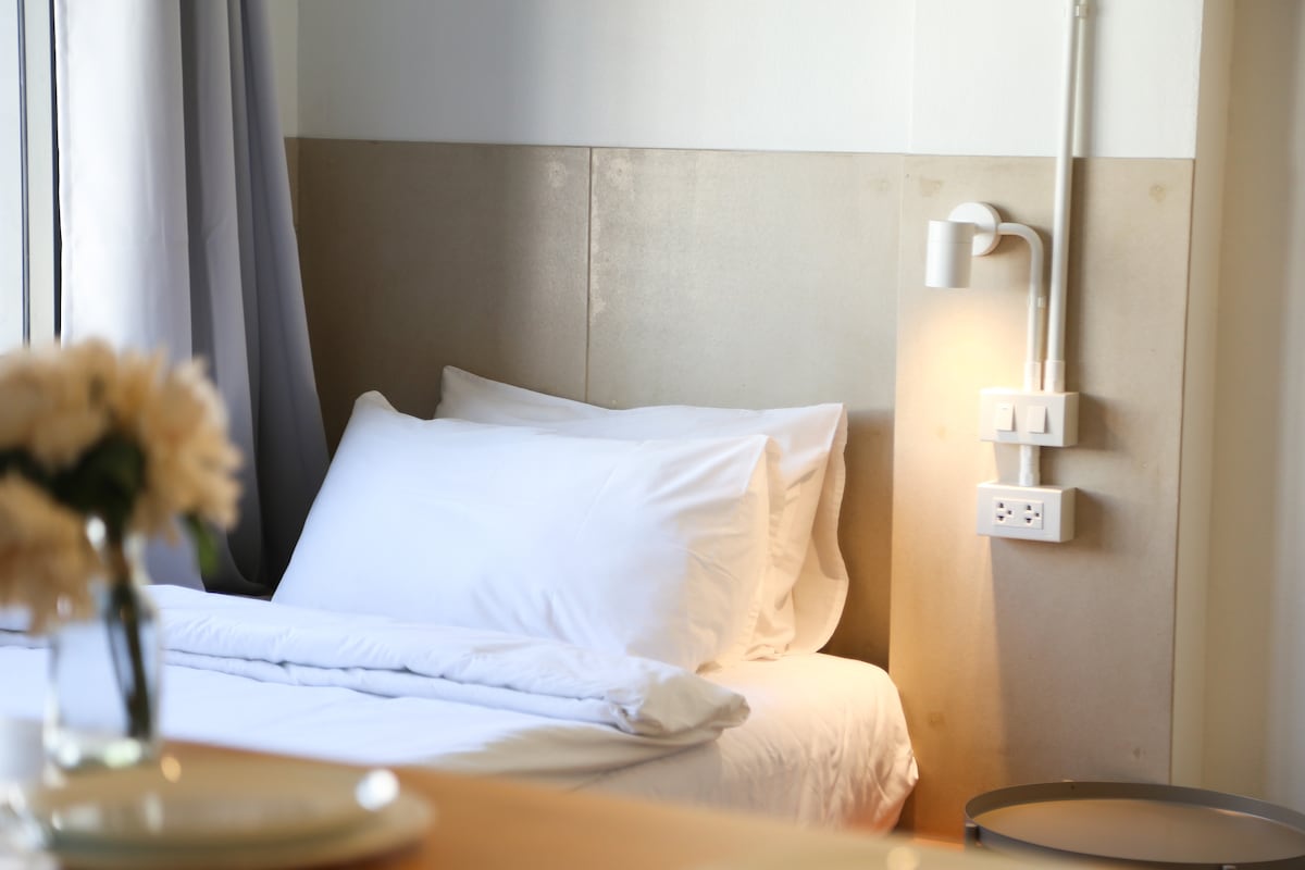 Welcome to The Forest Duplex Retreat – a relaxing nature escape in a quiet green setting. 🍀 The duplex features a bright, high-ceiling living area that feels open and airy. Large glass windows invite natural light and greenery into the space, creating a seamless connection between indoor comfort and outdoor serenity. Imagine wake up to birdsong and soft light filtering through the trees, relax on the soft sofa, work by the window with forest views, or simply enjoy stream your favorite shows.