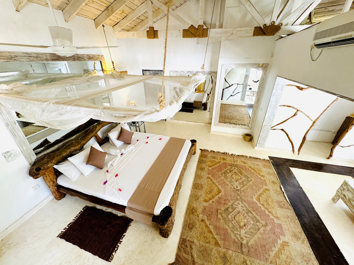 This charming, one-of-a-kind place is located just 5 mins walk from Jacaranda beach, 7kms north of Watamu. Kijiwe Villas consists of 2 double bedrooms downstairs, one room with 2 double beds and living room upstairs and a one-bedroom cottage. All rooms are en-suite. Set in a large lush garden with lots of outdoor seating. A perfect place to relax for a romantic getaway or enjoy with a group of friends. We also own a wonderful beach restaurant where you can enjoy a free sun bed.