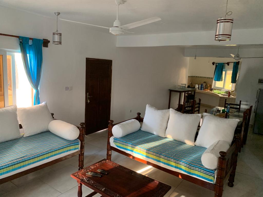 Welcome to our beautiful apartment with direct beach access! Located on the stunning East Africa coastline, this modern and stylish apartment offers the perfect getaway for those seeking sun, sand and sea. As you enter the apartment, you'll be struck by the breathtaking ocean views visible from the large living room windows. The living room is furnished with comfortable seating and a flat-screen TV with cable, perfect for relaxing after a day in the sun.
