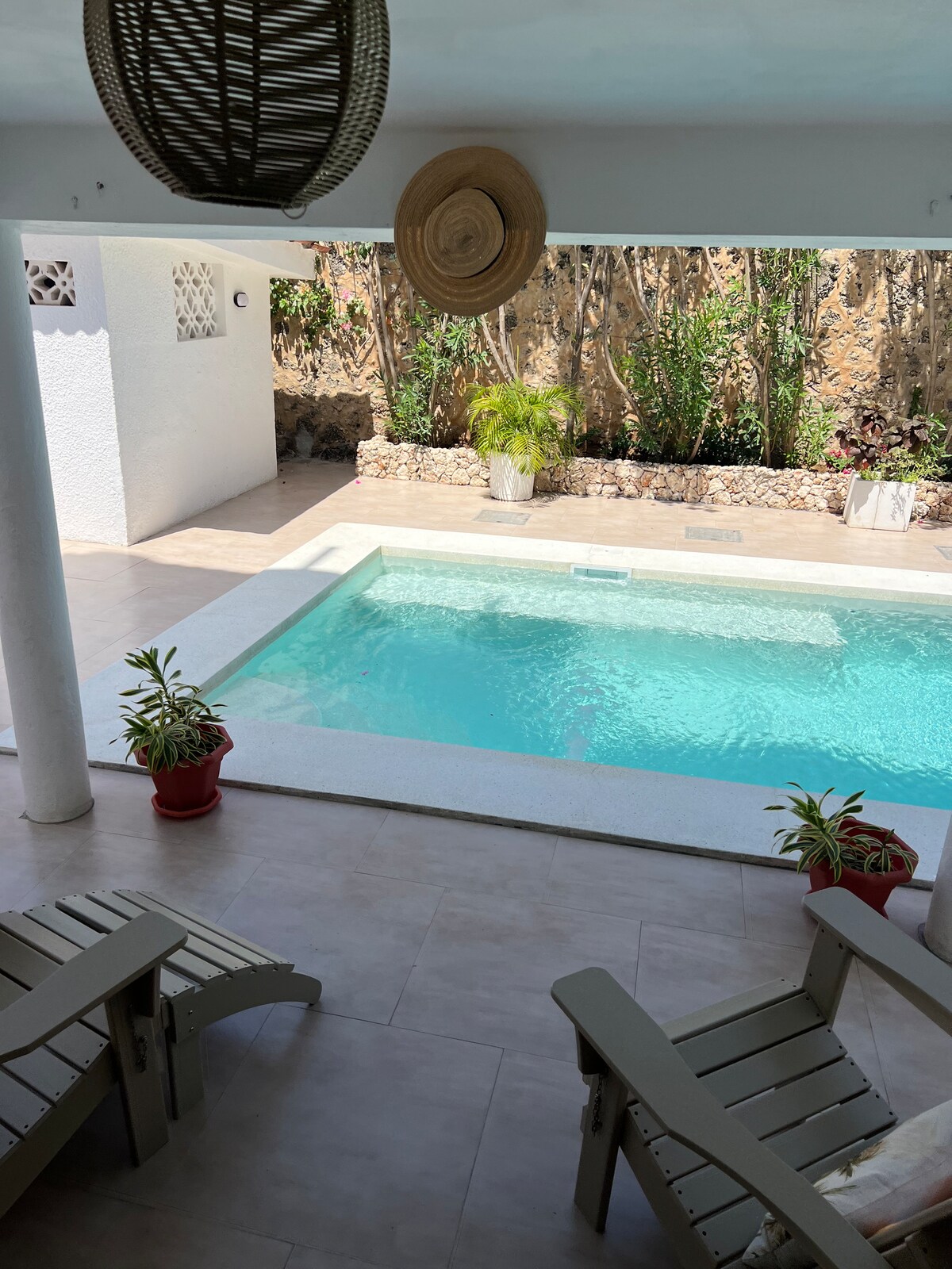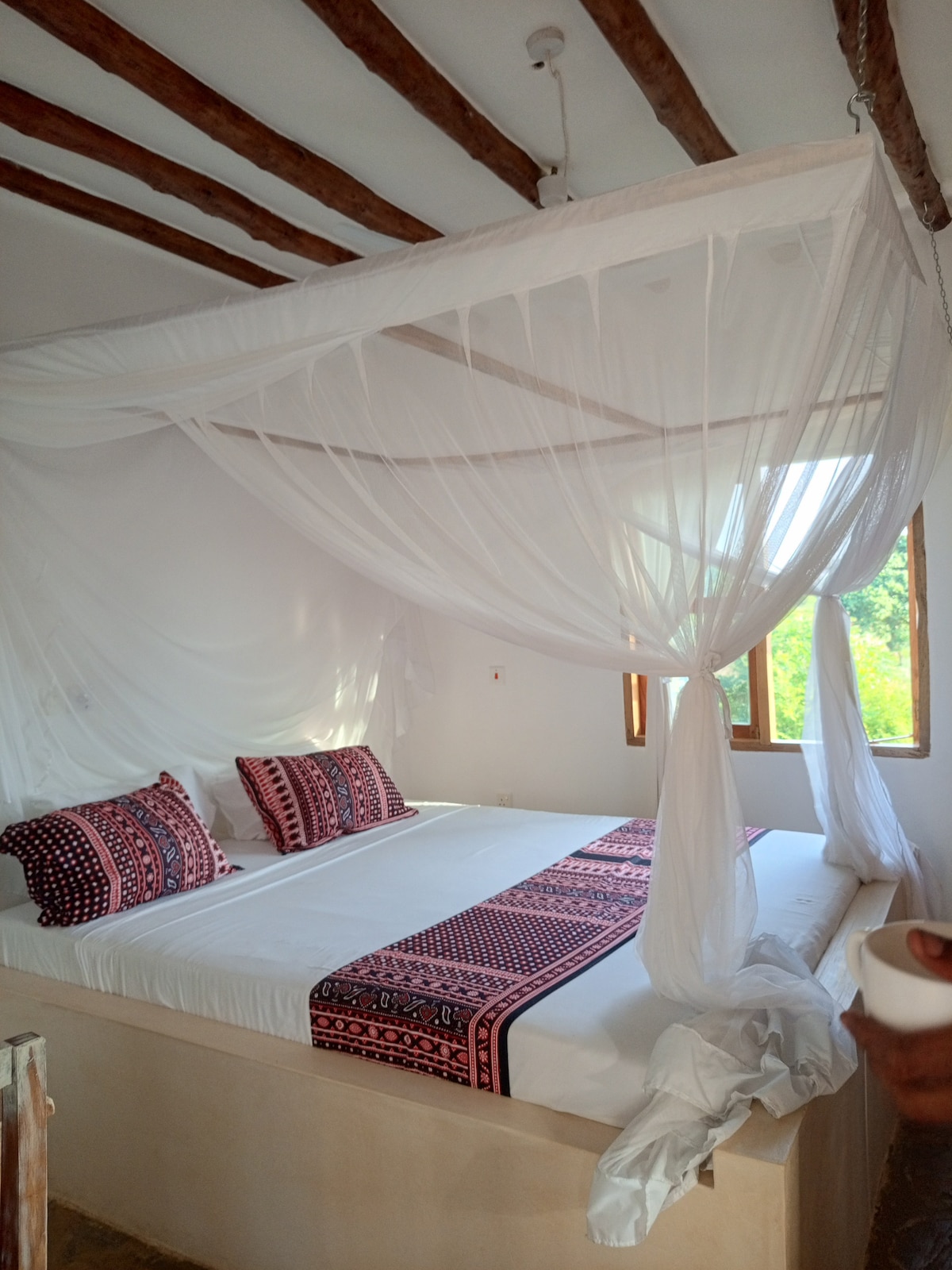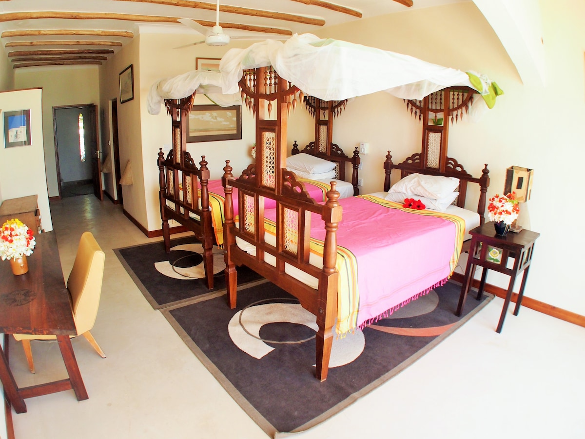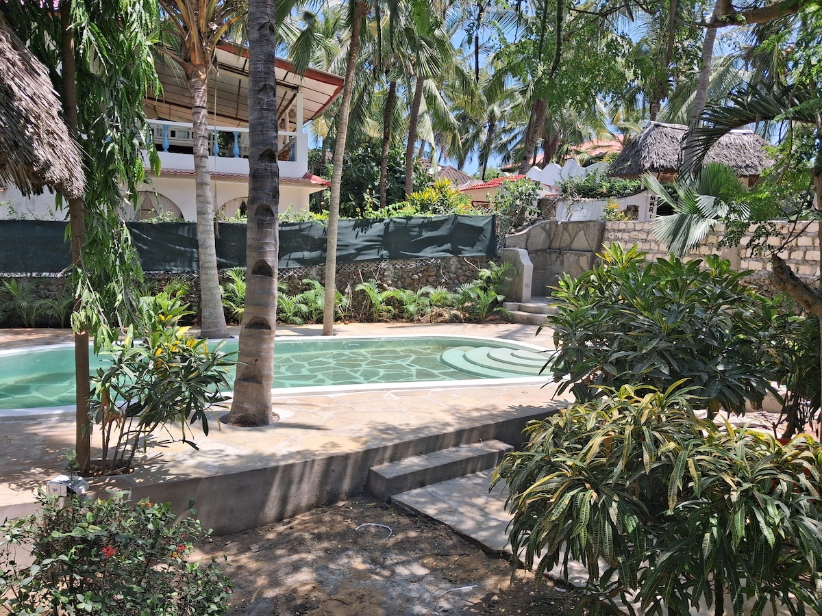 The property is a beach-front house with a good wall fence and a private gate to a white sandy beach. It’s a four-room house with a swimming pool!The rooms are bright and sunny with a breathtaking view of the ocean with good ventilation and own spacious bathrooms. An international chef is available offering an amazing international menu in a full equipped kitchen . Extra services are available at extra costs: massages, fishing , snorkeling, any transportation need, kitesurfing, safaris