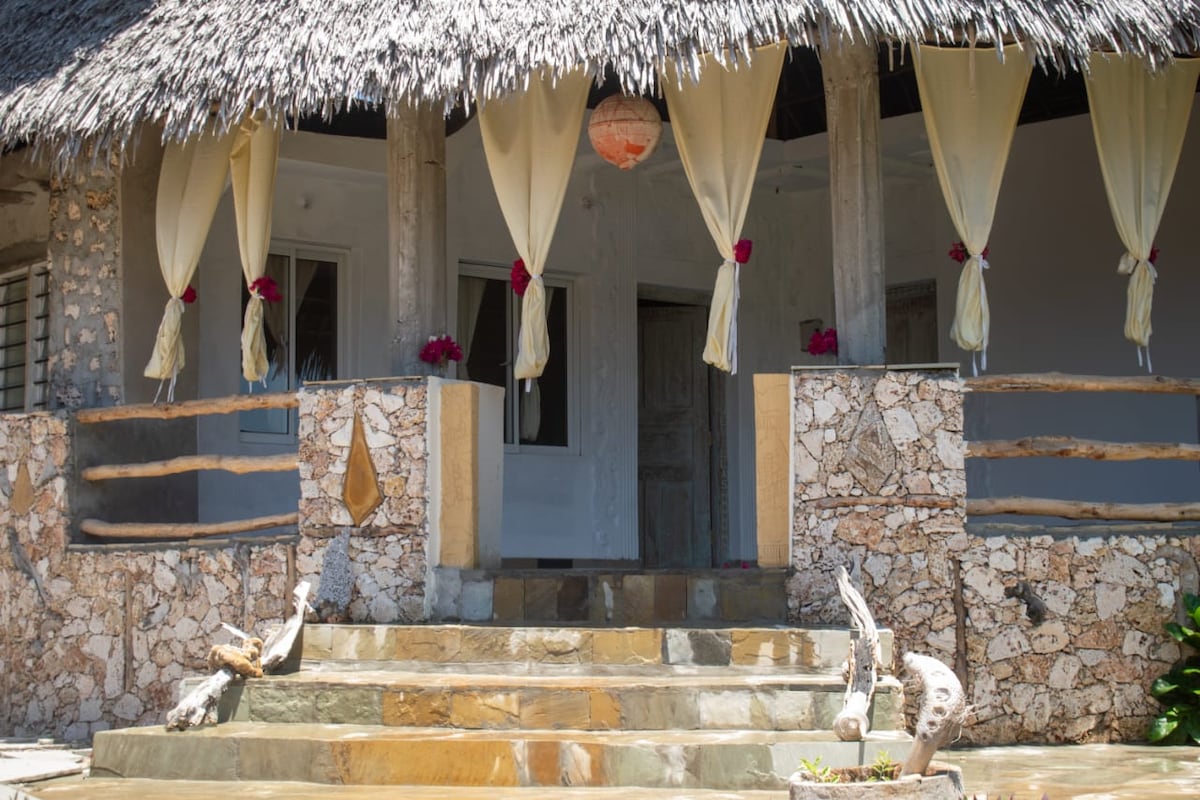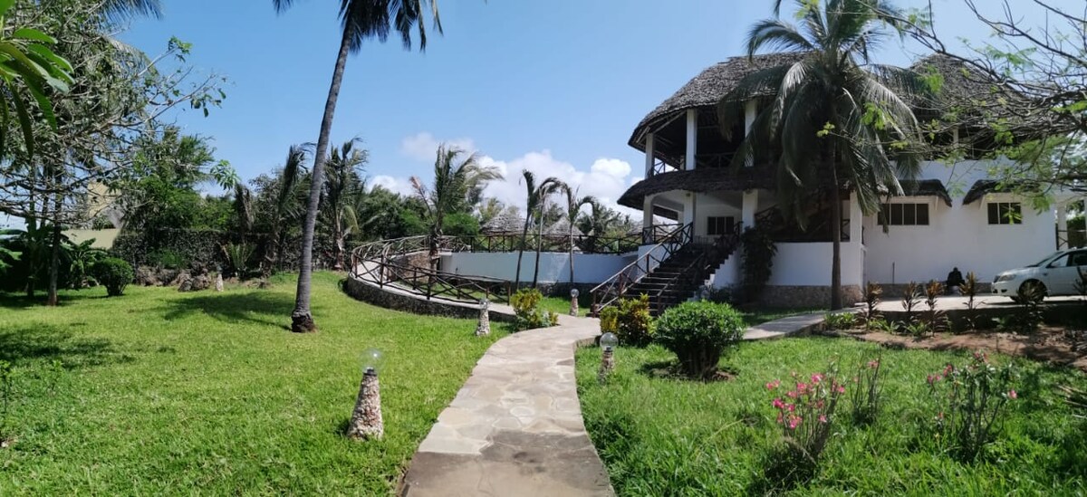 Traditional Swahili style house, stands on coral headland overlooking sea, beach, beautiful flowering gardens, private access to beach. Swimming pool recently installed, SEE HOUSE RULES Villa has 2 levels & views of Indian Ocean, private direct access to the beach, which stretches out either side, within the Marine Park. Includes 3 staff, cook, and daily room service, and gardener. Sleeps up to 10. Easily adapted and made comfortable to host smaller groups, by using just the upstairs bedrooms.