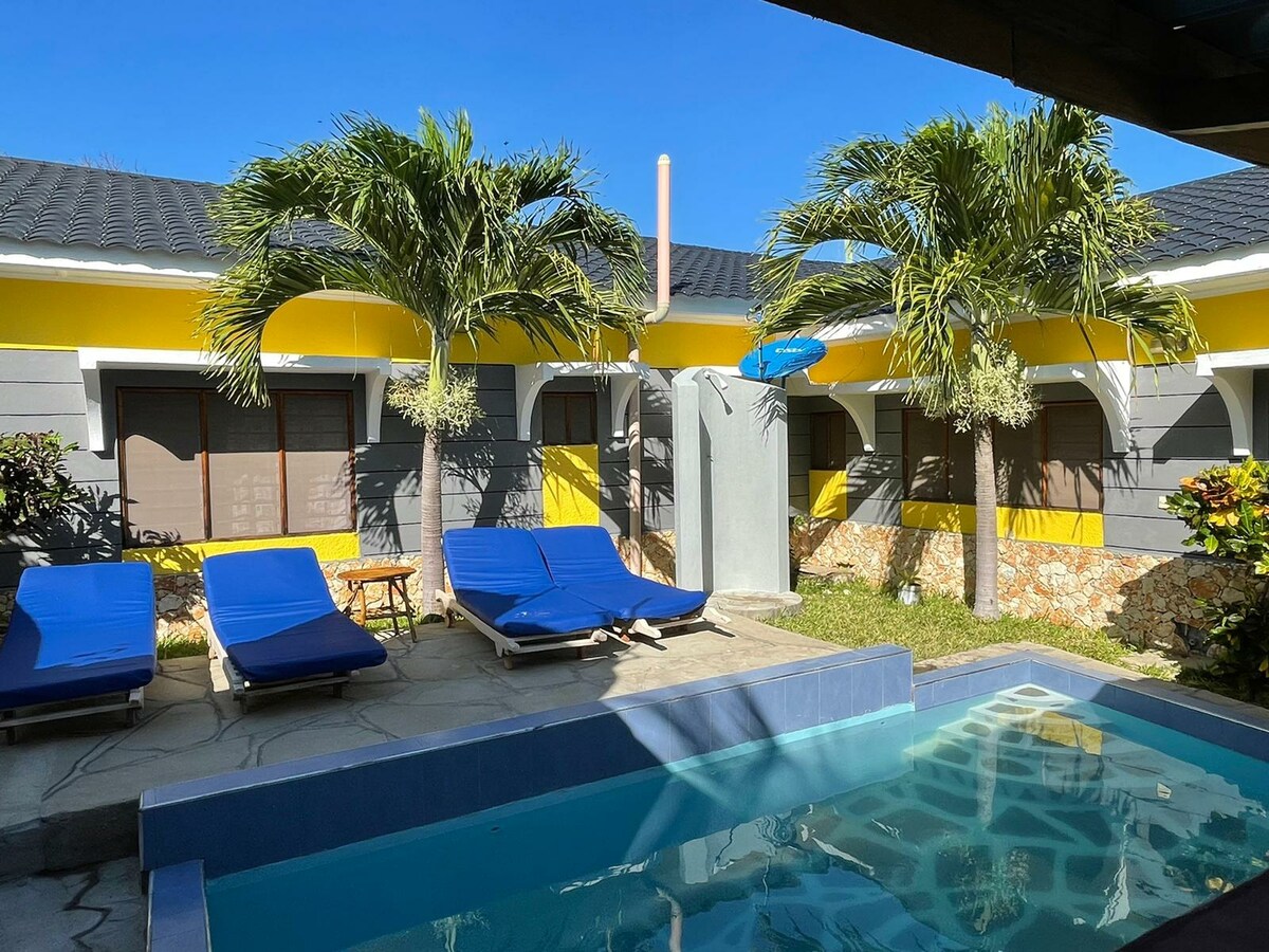 Enjoy a relaxing stay at this centrally located studio cottage in Malindi, just a short stroll from the beach and local restaurants. Perfect for up to 4 guests, it features 3 single beds and a divan. Unwind by the private pool or meet our friendly resident dogs (2 German Shepherds and a Japanese Spitz). With a supermarket nearby, stocking up is easy, making this an ideal base for your beach getaway. Book now and experience the best of Malindi!