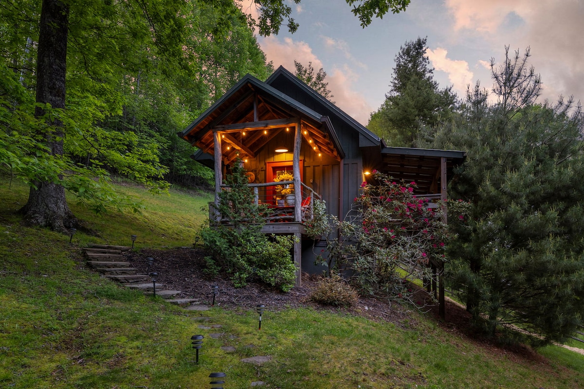 🌿 This handcrafted tiny house is designed for couples seeking a romantic, peaceful retreat. 🛏️ Queen bed, full bath, and cozy living space with vaulted ceiling. 🍳 Fully stocked kitchen. 🔥 Private firepit deck with Adirondack chairs. 🪵 Covered porch with a grill, and seating. 🏞️ Minutes to Boone, Blowing Rock, Banner Elk, Grandfather Mountain & hiking trails. 💑 Designed for peace, connection & quiet adventure🕯️ Tranquil, creative, and close to everything—without feeling close to anything.
