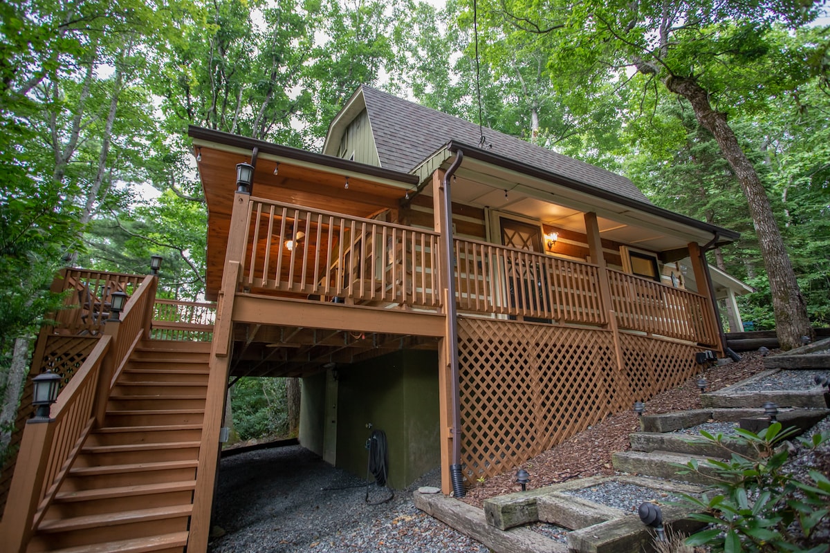 Beautiful cottage with gorgeous mountain views and bordered by a trout stocked branch of the East/South Fork New River near Parkway in Boone! Located within 5 minutes of Boone Golf Course, restaurants, shopping and Appalachian State University. Our cottage offers 2 spacious bedrooms with tvs, a laundry room and 1 bathroom. It has a cozy living room with a gas log fireplace and huge tv! The kitchen is fully equipped with a gourmet coffee bar! We also offer Nestle Cottage next door if needed.
