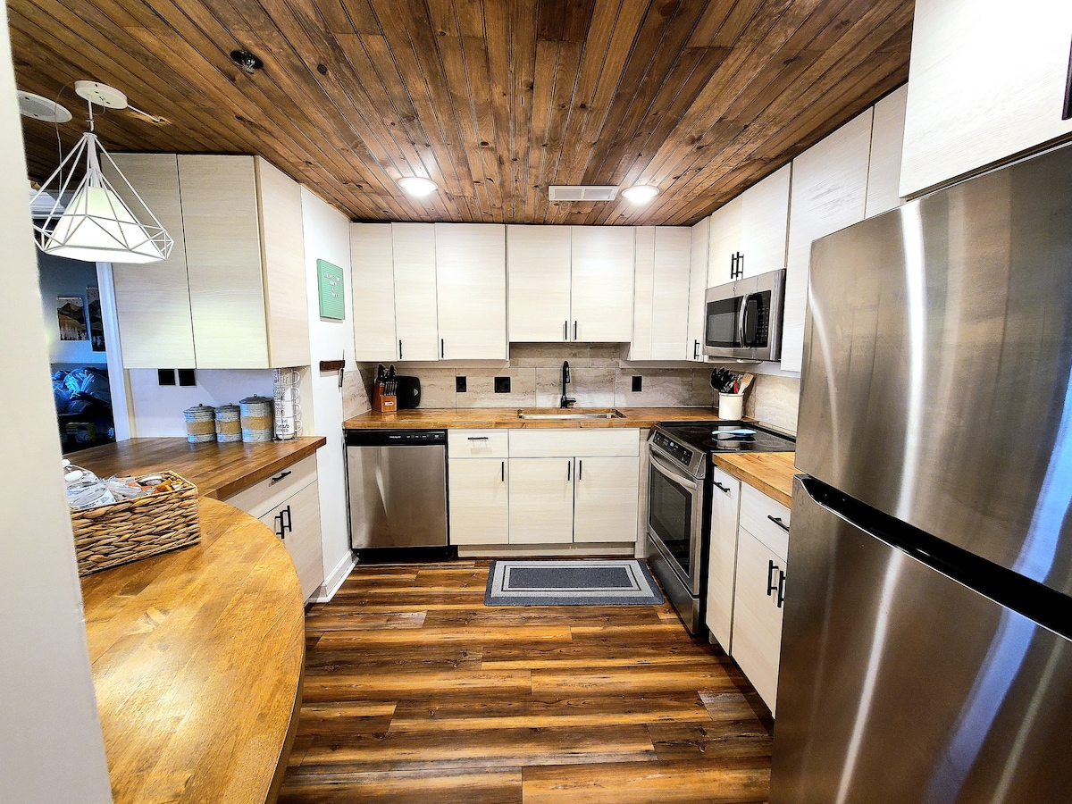 翻新的小木屋、适合儿童和宠物入住、Firepl和热水浴缸。