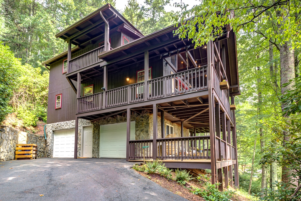 Discover a romantic getaway, a family vacation, or a guys/girls weekend at our pet-friendly, riverfront log cabin on the New River, near Boone NC, with breathtaking mountain views and App State nearby. Our family and dog-friendly cabin features a hot tub, outdoor dining, and firepit for cozy nights. Embrace adventure with riverfront access for kayaking, fishing, and tubing. Unwind in the game room, ideal for fun-filled memories.