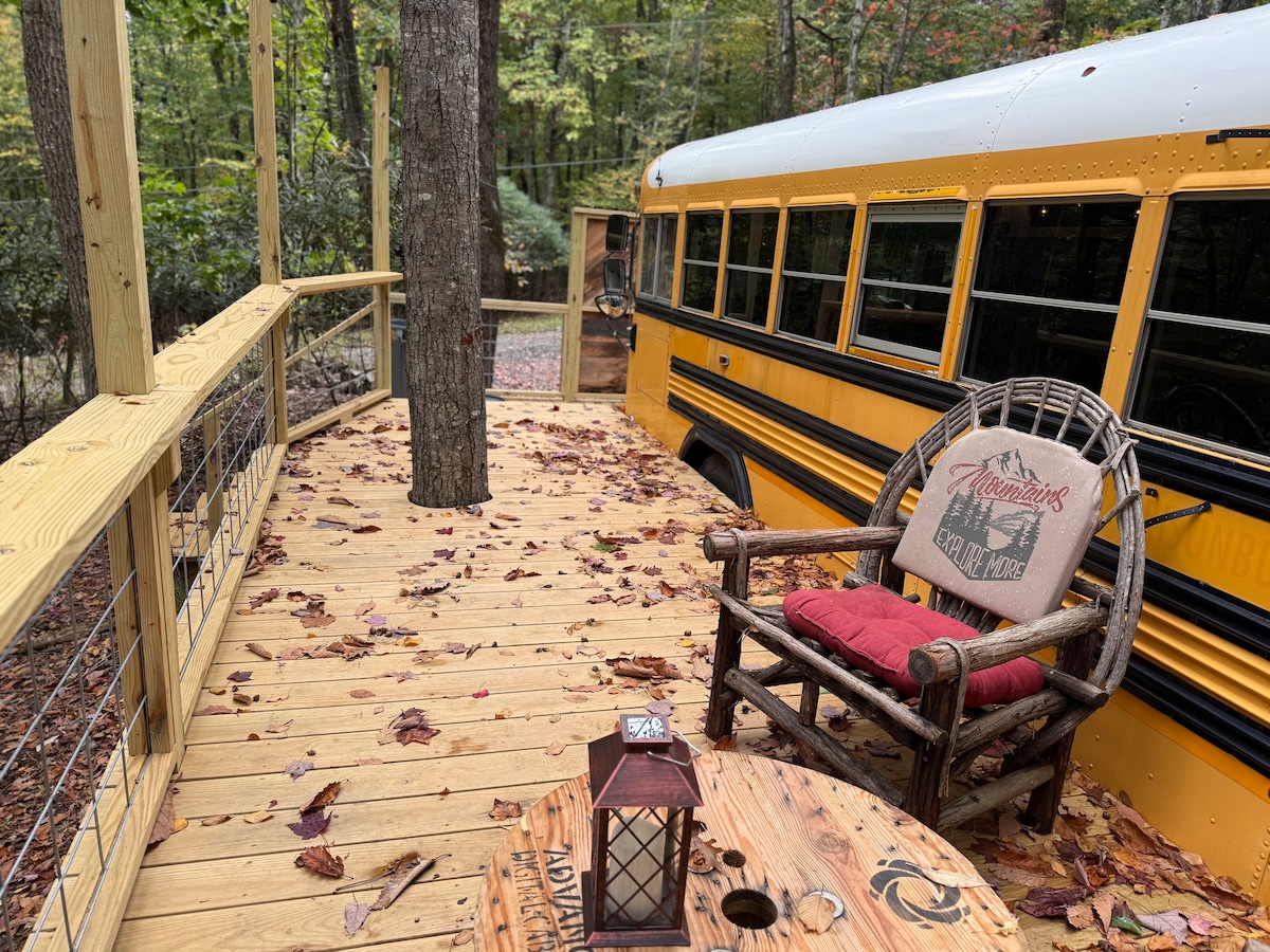 平均评分 5 分(满分 5 分),共 4 条评价School Bus Glamping -NC Mountain Wilderness Escape