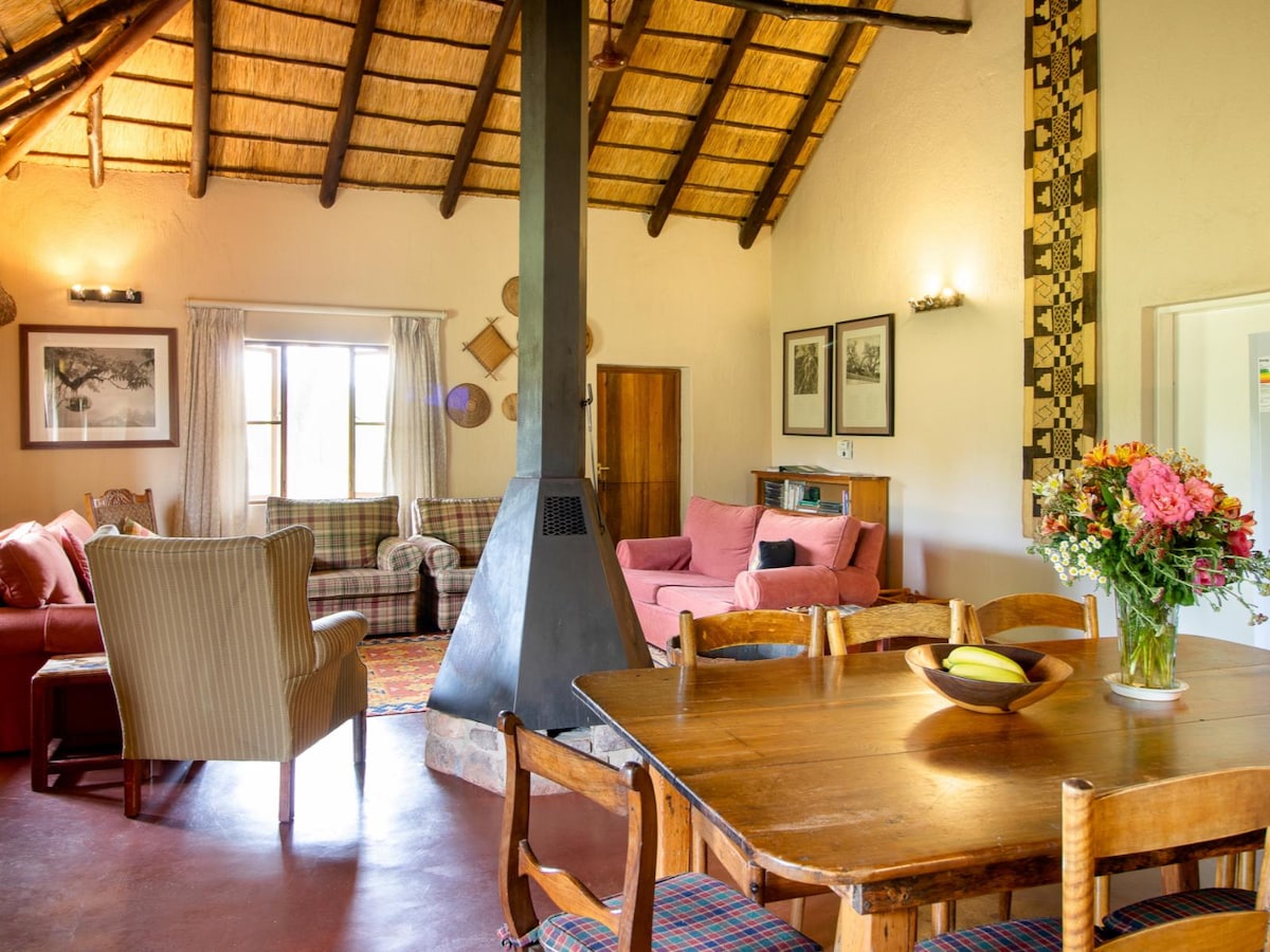 This self-catering lodge can comfortably accommodate up to 10 guests, offering air-conditioned bedrooms equipped with both baths and showers. The kitchen is fully equipped with a range of appliances. For entertainment, the living area includes a TV with DSTV. Guests can relish the tranquil bush surroundings and the breathtaking views of the pool from the deck. Solar backup system is available.
