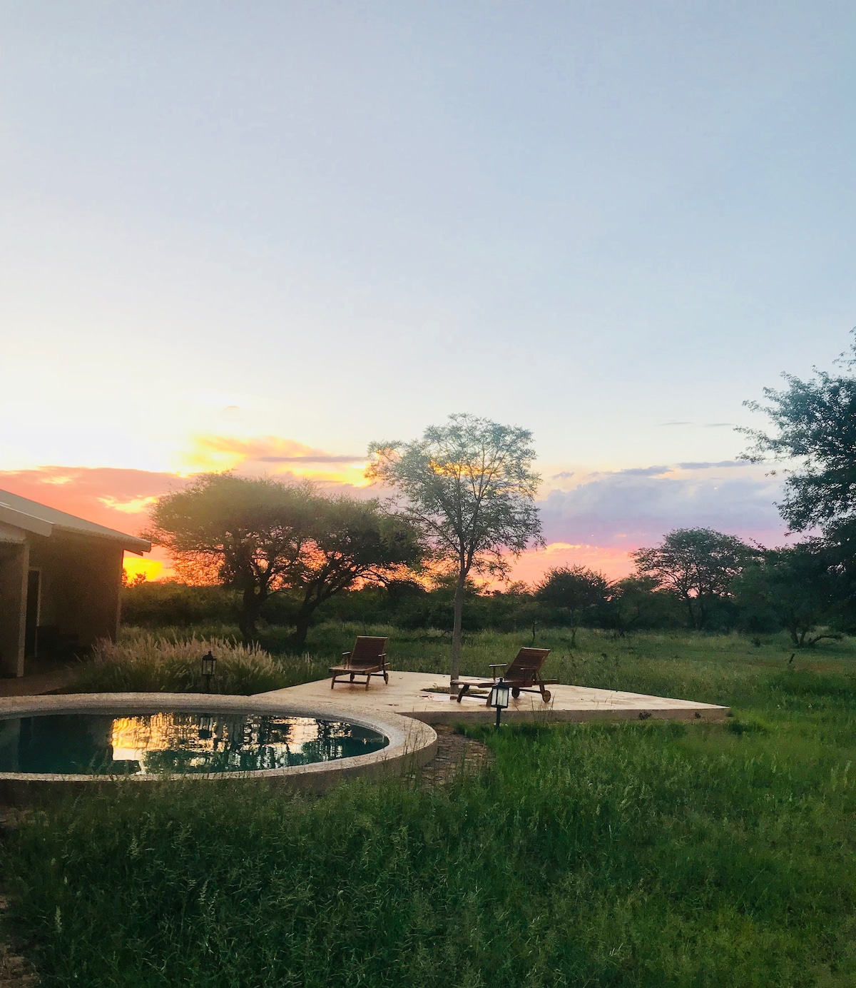 Situated on a private game reserve in the Waterberg Biosphere, Windsong Cottage has a private garden with a private hot tub and firepit with BBQ area. In addition to the 15m pool with an open vista of Waterberg hills and chance to view any passing game, we offer walking trails, game drives, guided astronomy, horse rides and guided birding. For children, there is a trampoline, sandpits, a jungle gym, pony rides and donkey cart rides. Windsong is pet friendly.
