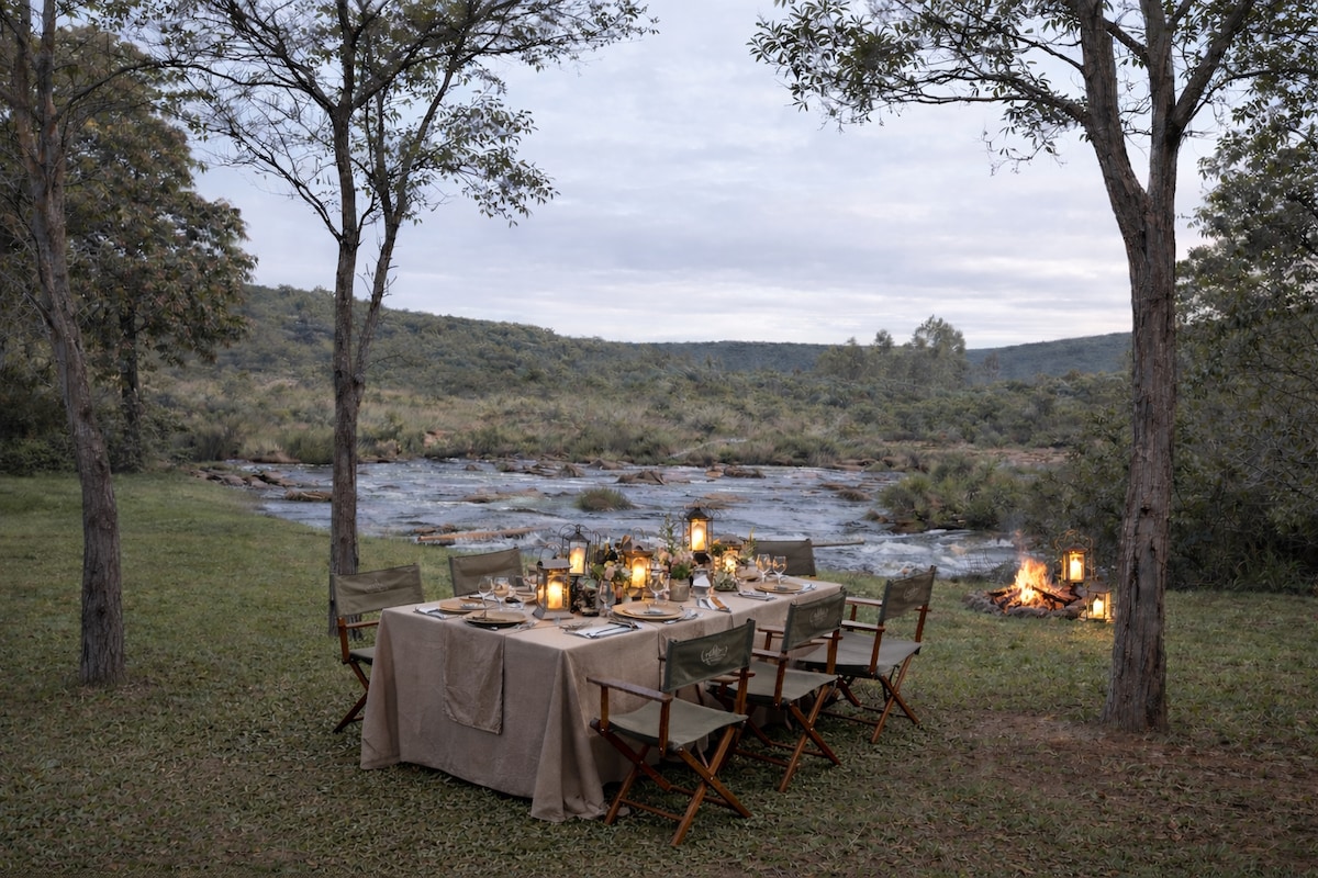 From the moment you arrive, this beautiful riverside home invites you to slow down and reconnect. Just 2.5 hours from O.R. Tambo, it offers luxury, comfort, and nature in perfect balance. Enjoy river barging, game drives, hiking,fishing and relaxed outdoor living. With elegant en-suite bedrooms, a spacious family suite, daily housekeeping, and a private chef on request, it’s the ideal escape for families and friends seeking unforgettable moments together.