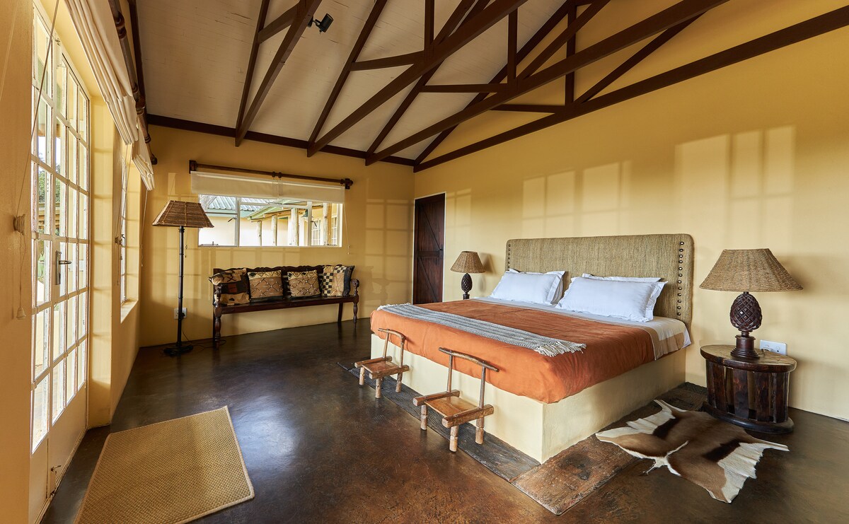 King suite with mountain and river views, Designer 4 poster Tusk king-size bed, air-conditioned, en-suite bathroom with indoor & outdoor shower, slipper bath with all amenities. Additional sleeper couch @ extra cost - please enquire to incl in quote Offer includes: Welcome drinks on arrival, a 3 course dinner each night, breakfast & 1 sunset game drive - please enquire to receive a formal quote