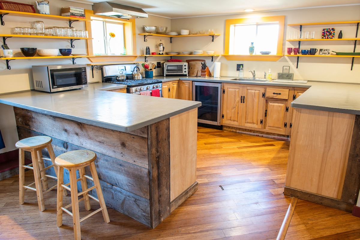 Off a quiet dirt road set up in the mountains, The Nest Studio is a bright and cozy space. Great for couples, the studio has a queen bed with an additional small twin pull out sofa, best for a little one. The newly remodeled Moretown studio is close to skiing, mountain biking, hiking and several wedding venues. Coffee and tea is provided. The Nest has a full kitchen, washer, dryer, and tiled shower. Secure bike storage and bike wash are present on the property