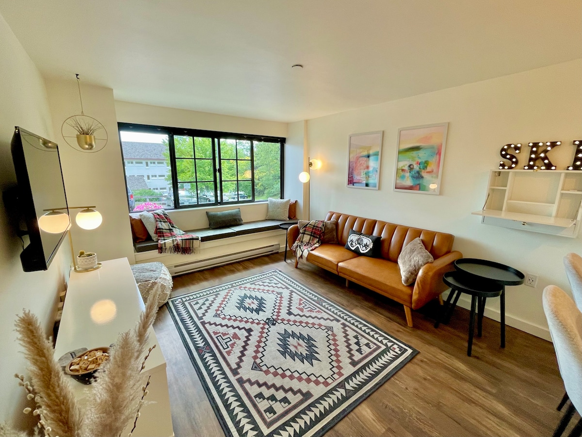 Modern + charming apartment with private entrance + deck located in Historic Waterbury Village within walking distance to popular shopping, coffee shops, pubs, and restaurants. The building is also home to the Stowe Street Cafe and Bridgeside Bookstore with plenty more shops and eateries just a short walk away. Bolton Valley, Sugarbush, and Stowe Mountain Resorts are just a 20-30 minute drive, and the Ben & Jerry's Factory and Waterbury Reservoir are less than 10 miles north. A perfect location!