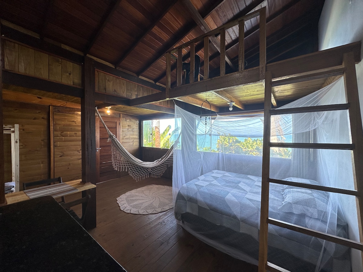 Chalé na Praia da Tiririca para quem gosta da natureza e mar 🌊. Está situado dentro de uma área verde a 5 m da praia da Tiririca O chalé oferece lençóis, toalhas, geladeira, fogão, Ar Condicionado, liquidificador, wi-fi uma cama de casal,uma cama de solteiro e ducha externa para se refrescar 🕊️ Uma varanda com rede e uma linda vista para o mar, na praia da tiririca, o point do surf, em Itacaré 🏖 um espaço para relaxar 🕊 Venham admirar e desfrutar a beleza da praias e sua natureza 🌳🌴