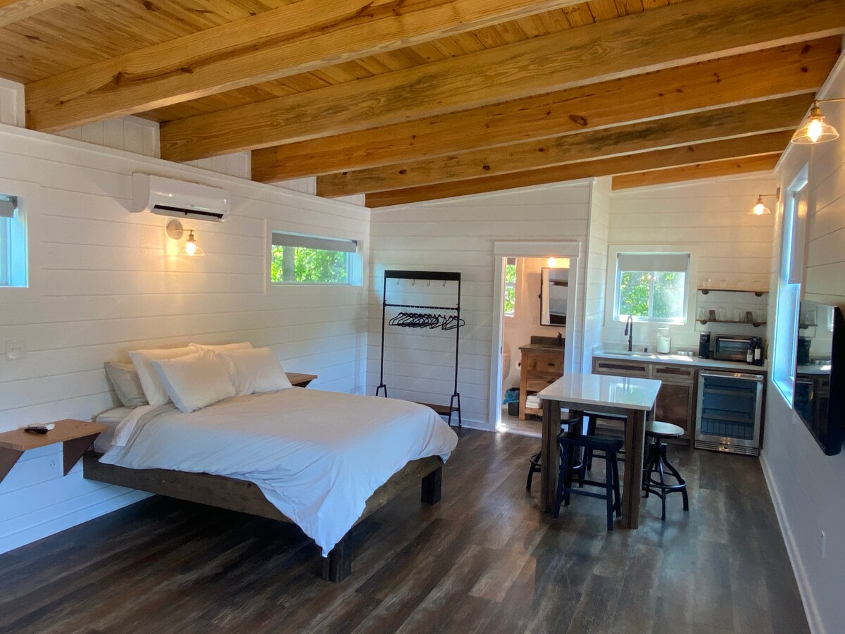 The James is a unique NEW 530 sq ft retro coastal tiny home located in a gorgeous neighborhood on James Island ◡̈ 10 mins to downtown Charleston 12 minutes to Folly Beach Walking distance to restaurants The James sleeps up to 6 people and 2 dogs (NO PET FEE) & boasts a private fenced yard & patio with an outdoor shower and Clawfoot tub! The James is ideal for solo travelers, couples, families, those traveling w/ their dog(s), those w/ limited mobility and groups of friends. #BNB-2023-02