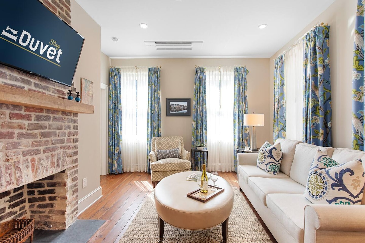 Immerse yourself in Charleston's vibrant culture from this stunning two-bedroom suite, meticulously designed by a professional interior designer. This light-filled haven blends modern comfort with antique charm, boasting beautiful artwork and a curated selection of new and vintage furniture. This designer escape is more than just a place to stay, it's a launching pad for an unforgettable Charleston experience.