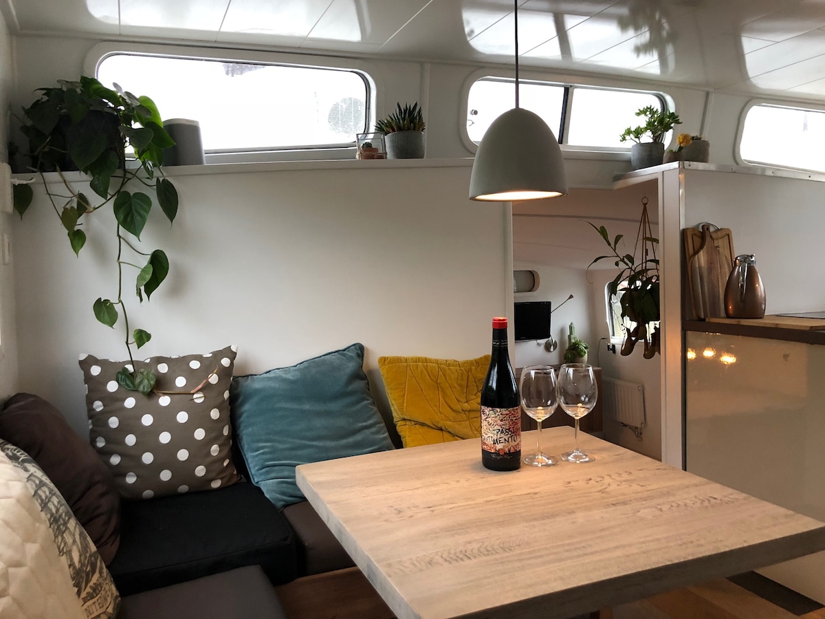 On our modern, charmingly decorated houseboat you'll have a wonderful stay on the water. It comes equipped with all conveniences. The location is very popular and central, situated near the lovely town of Monnickendam, typical Dutch surroundings, and Amsterdam. A 20-minute journey via public transportation takes you to Amsterdam. There are plenty of excellent restaurants close to the houseboat! - The boat's location may vary throughout the year - This boat is not intended for self-navigation