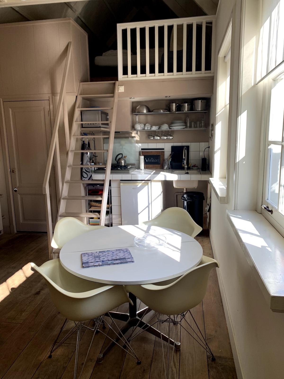 Brand new! Very tastefully decorated studio with panoramic views in a rural area, yet a stone's throw from Amsterdam. The studio is located in the garden of a beautiful modern houseboat (which can sometimes also be booked during the summer holidays, if you're lucky!) on the other side of the Broekervaart and borders the meadows. The studio is accessible by its own private cable ferry. Free parking is available directly on the dike opposite the plot.