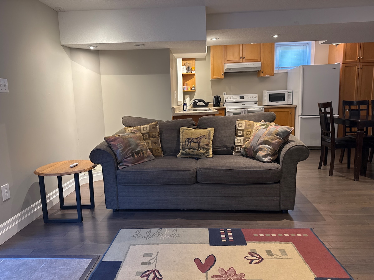 Professionally designed guest suite with open concept layout. The guest suite located on the lower level of our home has a comfortable living space to welcome you and provide an enjoyable and relaxing "Home-Away-from-Home" stay. We live on the main level of the house. Access to the suite is through the shared entrance on the main level of our house. Our property is within walking distance to the "RARE" nature reserve and hiking trails overlooking the beautiful Grand River.