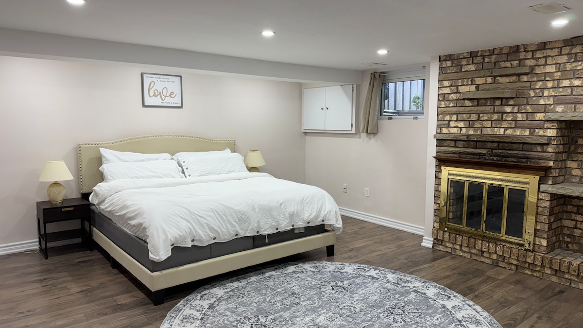 Welcome to your spacious and open-concept two-bedroom walk-out basement apartment located steps away from Downtown Kitchener (DTK), walking trails, Victoria Park, and Communitech Hub. There is a private entrance through the back with keyless entry. The spacious master bedroom is equipped with a king bed and a workstation for those wanting to get some work done. The cozy living space has plenty of seating and offers a 55-inch smart TV for all your streaming needs.
