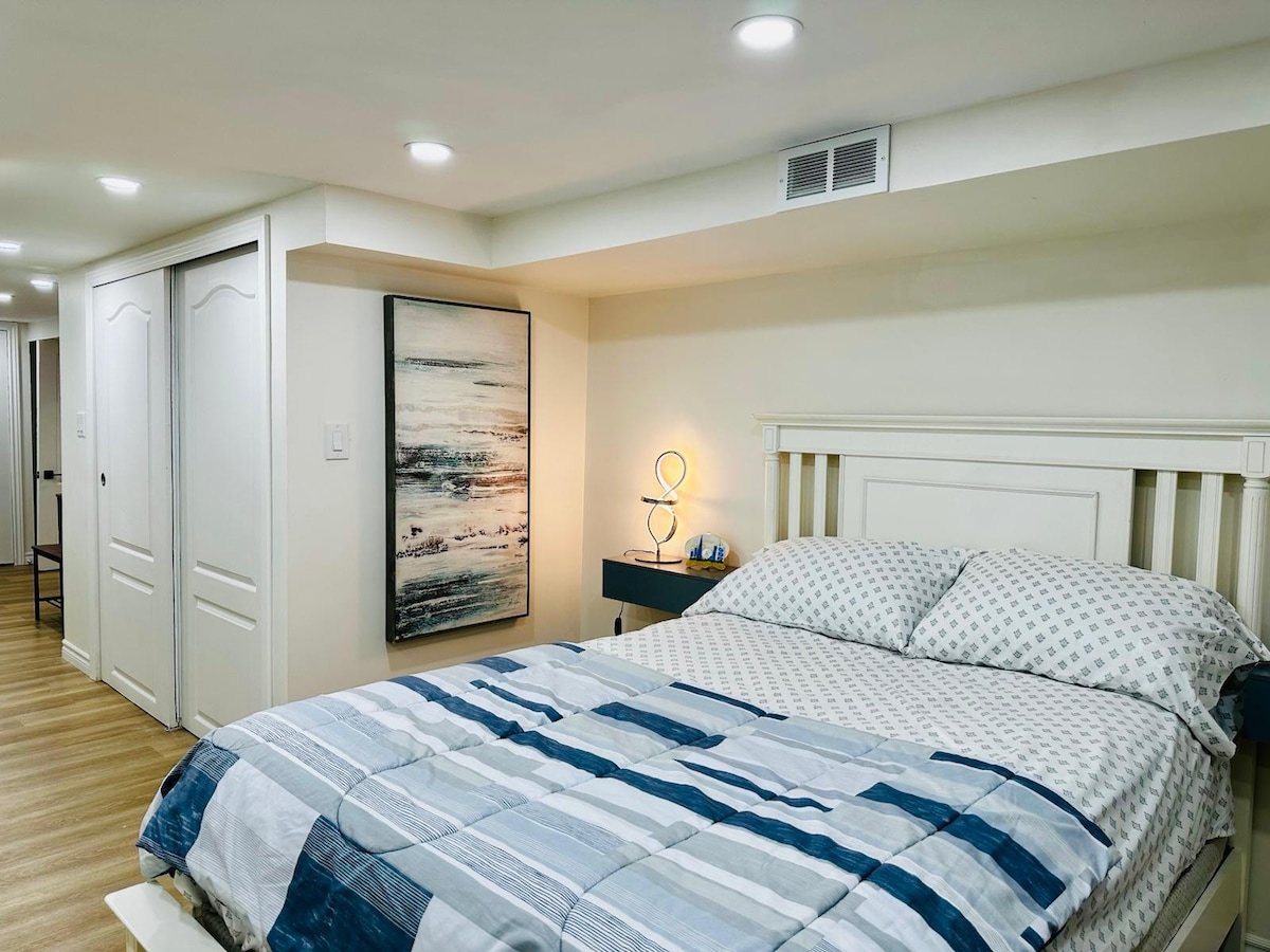 整个地下室:1间卧室+额外的标准双人沙发床