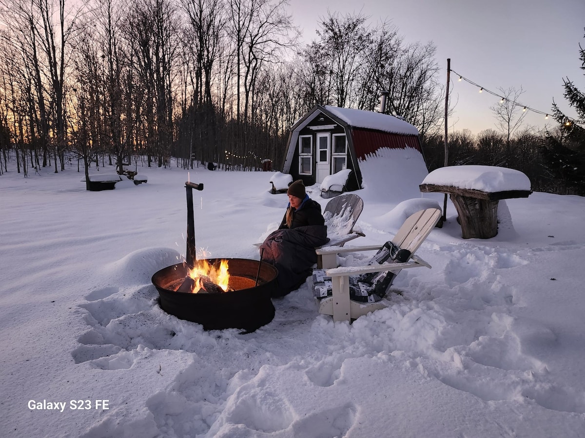 Take it easy at this unique cabin experience in the city. The Tiny House is a private 9’ x 12’, fully insulated, 4 season cabin with a couch, kitchenette with running water, queen bed, Loftnet hammock & outdoor shower. Enjoy the natural beauty of our half acre tree-filled backyard, yet still close to downtown Guelph. This is a glamping experience that requires appreciation for tiny house living. Guests have access to a separate portable washroom, by walking about 100ft to the back of the yard.