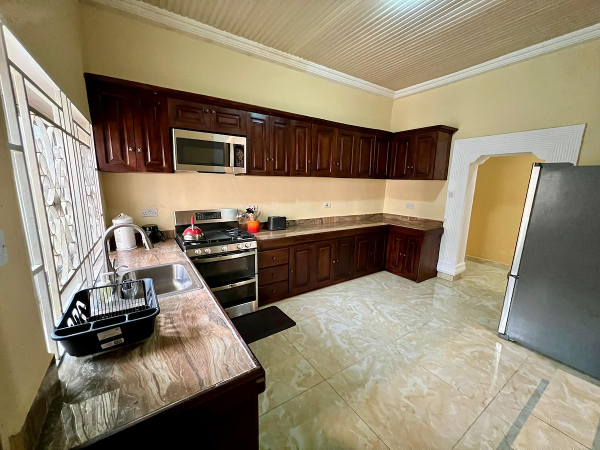 Enjoy a spacious 1BR in a safe, central neighborhood—just 5 mins to the CBD and 25 mins to Lumley Beach. This flat offers a private entrance. Solar Backup Power: Stay connected with lights and charging during outages. Full Climate Control: AC in both the bedroom and living room. Business Ready: Dedicated desk, high-speed Wi-Fi, and Cable TV. Fully Equipped: Kitchen with stove, microwave, fridge, and washer. Guest Interaction: Check-in: 3 PM | Check-out: 12 PM (Flexible upon request).