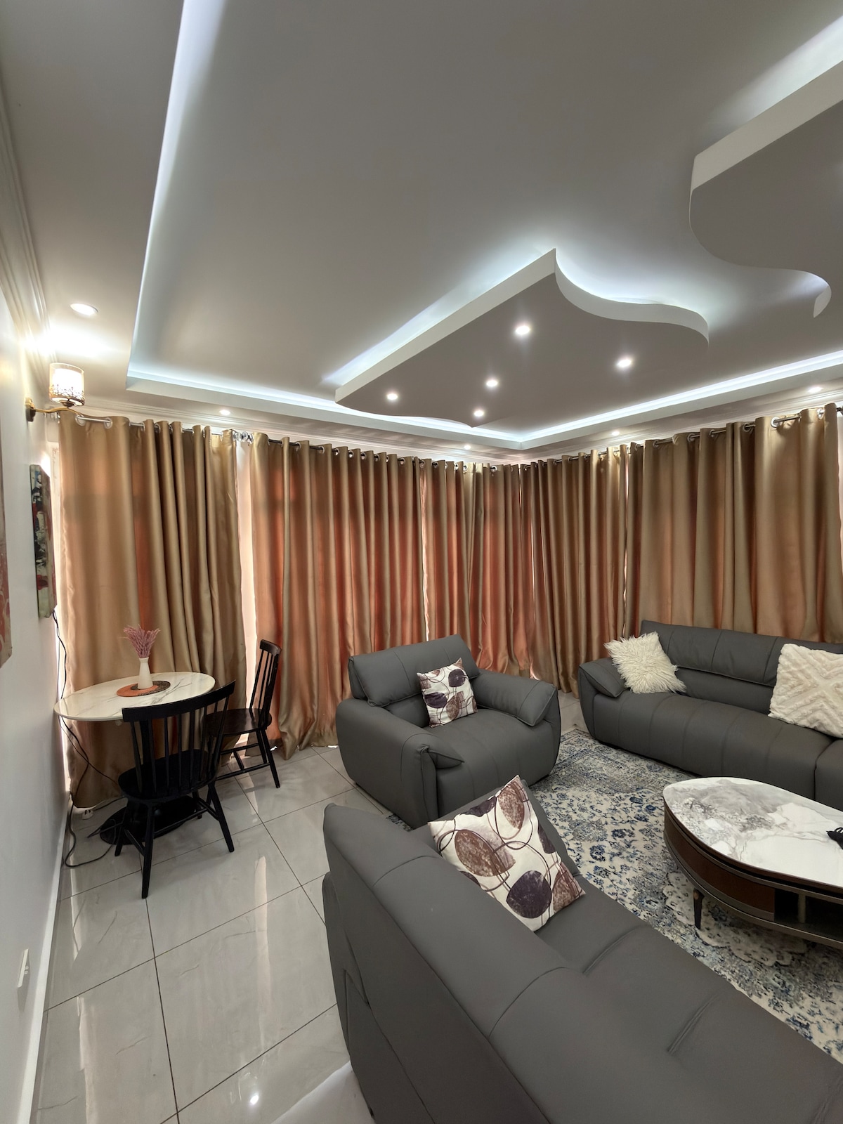 Forget your worries in this spacious and serene space. Tastefully decorated and fully furnished modern 3 bed house with scenic mountains views Perfect for: Remote workers, expats, travelers, and business visitors. Wi-Fi Guest Toilet AC Utensils Solar power Spacious parking Security guard CCTV Electricity Please note that Havillah Court is located on top of a hill but is accessible via a paved road from the main highway. You need a good car that can climb hills.