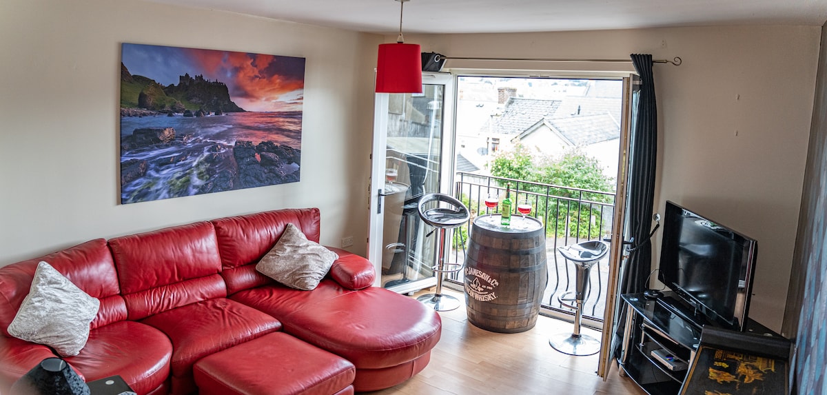 Experience a cozy retreat at our 1-bedroom apartment along the scenic River Foyle. Perfect for solo travelers or couples, it features a fully equipped kitchen with a cooker, oven, microwave, kettle, coffee maker, and washing machine. Enjoy free WiFi, a PS5, and a Smart TV for your entertainment. Relax on the shared roof terrace with stunning views. Conveniently located near local attractions, cafes, shops, and public transport. Free parking included. Book now for a memorable getaway!