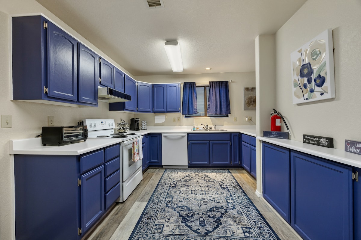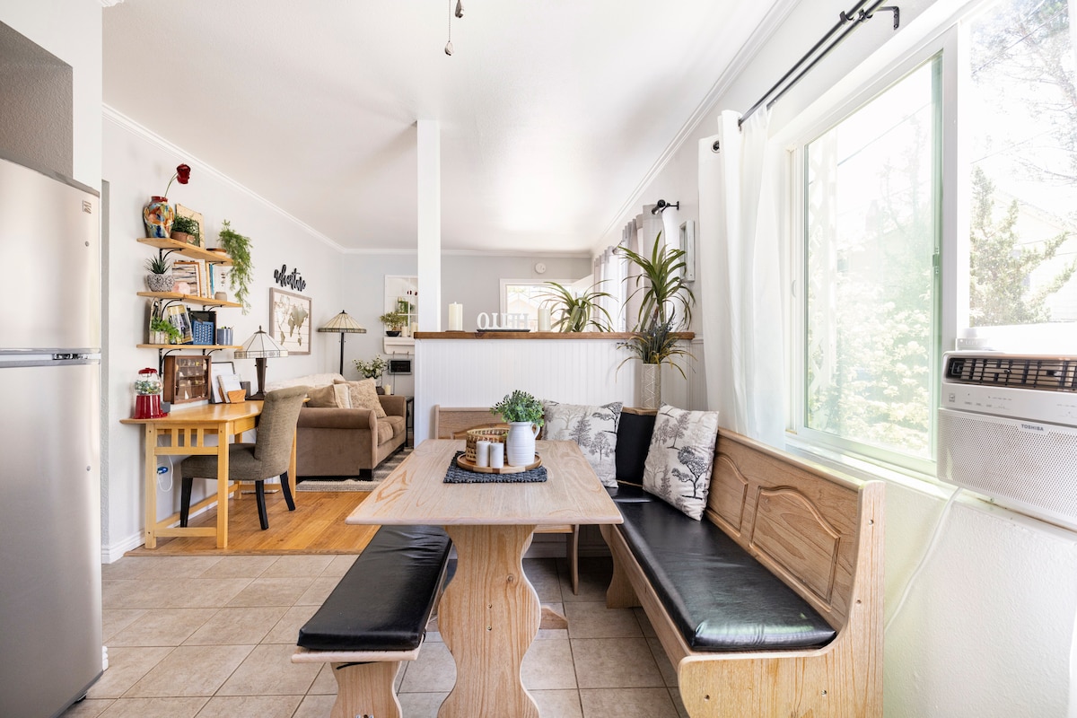 This is a separate & private suite, with free parking & a private entrance. Walking distance to Courthouse/Whiskey Row, about 1.25 miles & Prescott Resort 1 miles. 4.1 miles to Watson lake. Equipped with a full size refrigerator, induction cooktops, oven/air frier, dishwasher, microwave, dinnerware, drinkware & utensils. Also provided are kitchen, and bed & bath linens. Additional pillows, blankets, towels, pack-n-play, iron, picnic basket & more available on request