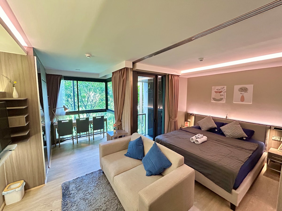 A peaceful home in the heart of Bangkok. 1 of 3 Lux 43 SQM apartments in the same low rise complex with tranquil views and all amenities. Centrally located 5 mins walk to the BTS station: Ekkamai. Ekkamai boasts eclectic nightlife, restaurants, bars, beautiful boutiques and Onsen. All of Bangkok's attractions are easily reached by Skytrain. The apartment complex has a full gym, roof top pool and free shuttle to Sukhumvit main road. CLICK ON OUR PROFILE PICTURE FOR DETAILS OF OTHER UNITS.