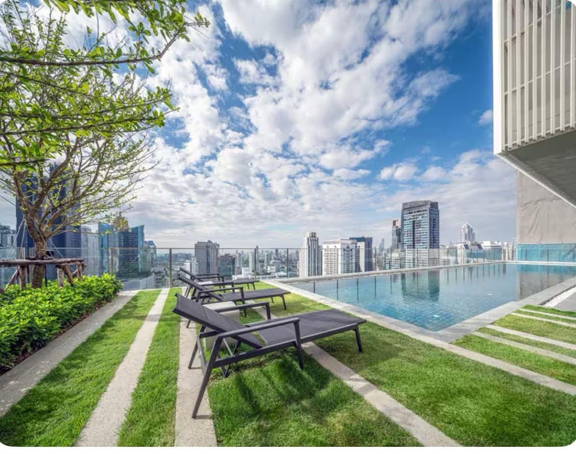 Luxury Skyline Condo Rama9 InfinitySkyPool&Bathtub