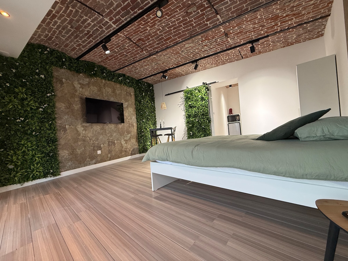 Le gîte du petit palier propose son studio fraîchement rénové au RDC et jardin qui joue avec d'agréables volumes pour 2 personnes. Le logement vous offre un coin nuit magnifiquement séparé par une cloison sur mesure. Il se compose aussi d'un coin TV avec Netflix, un coin repas et une cuisine spacieuse. La salle de bain dispose d'une douche, lavabo et WC. Située dans les quartiers bourgeois de Roubaix, vous séjournerez dans une rue paisible non loin des lieux prisés de la ville.