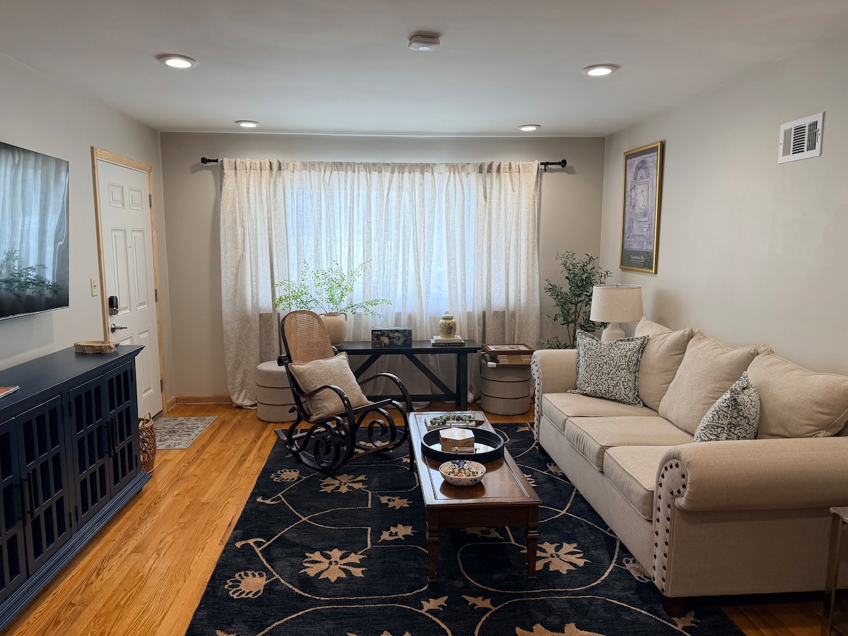 Two Bedrooms, Quiet & Safe Central location - Minutes from Hospitals, Highways, Shopping, Parks, Restaurants Central Air/Heat, Fast WiFi, Smart TV Black-out Blinds Perfect for business travelers, digital nomads and students Newly renovated, beautiful brick building Spacious floor plan Two parking slots; one garage space In Unit washer/dryer combo to make your stay efficient