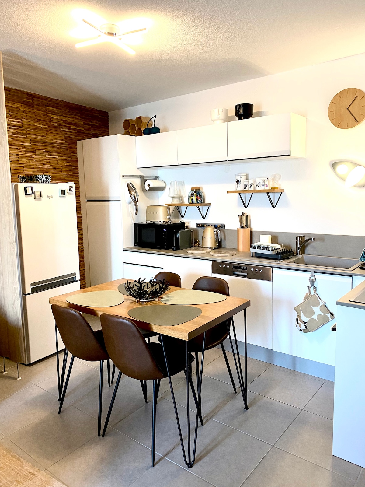 Le loft design indépendant de 100 M2 s’ouvre sur un grand espace de vie composé d’un salon, d’une cuisine ouverte et salle de bains au rez-de -chaussée et d’une mezzanine à l’étage. Le salon possède un grand canapé en cuir , un fauteuil et une télévision écran plat. La cuisine ouverte est entièrement équipée avec îlot central. La salle de bain est dotée d'une douche à l’italienne, double vasque, machine à laver et WC. Les deux chambres disposent d' un lit en 160 et d'une penderie.
