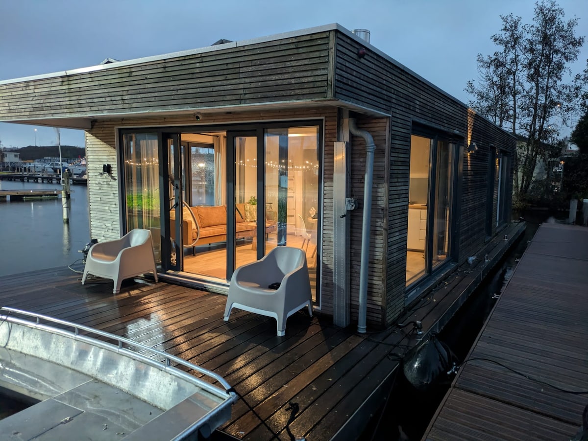 Situated on crystal clear water, you find peace and fun for the whole family here in both summer and winter. You will explore the natural surroundings by boat, bike or on foot. After barbecuing, you paddle a round on your SUP through the beautiful villa district and watch the sunset from the water. In the winter, you sit comfortably with your hot chocolate by the fireplace and play board games. At the end of the day, you flop down satisfied in the hanging chair in the sunny conservatory.