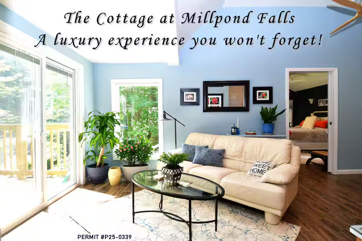 <b>Escape to your private waterfall cottage!</b> The Cottage at Millpond Falls is perfect for couples seeking a romantic, five-star retreat just one hour from NYC. ✅ Comfy queen bed & super-clean luxury linens ✅Crackling fire pit by the falls ✅ Minutes to wineries, breweries & trails ✅ Nearby adventures: skiing, lake fun, orchards ❤️ SUPERHOST • Our most frequent review: "The best AirBnb experience we’ve ever had, can't wait to come back!" Book your dates while they’re open.