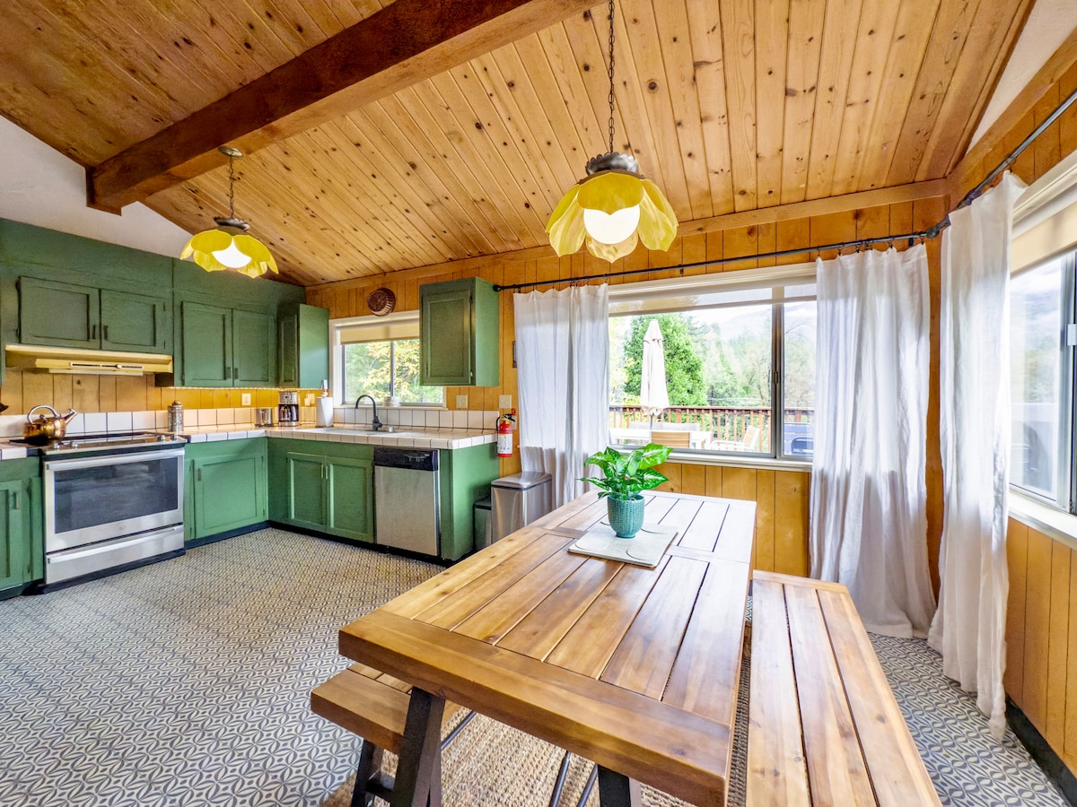 This new home sits inside the park gates a short drive to Yosemite Valley, a Park reservation is not needed. This elegant home features vaulted ceilings, expansive windows providing lots of natural light and an open floor plan with high-end appliances and finishes. The home is filled with wood custom milled from this site, from the cabinets to the furniture, created specifically for this home. Located in Yosemite west adjacent to miles of forest it is a great complement to your Yosemite visit
