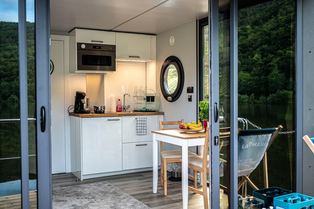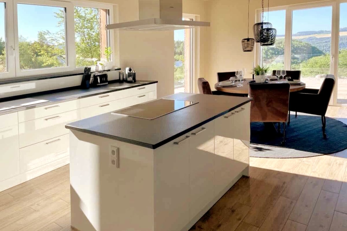LuxApart Vista is your luxurious holiday home in the Eifel, featuring a panoramic outdoor sauna – perfect for couples, families, and friends. Enjoy 135 square meters of comfort with a breathtaking view of the Eifel forests. Two peaceful bedrooms, a modern kitchen with an island and access to a 70 sqm terrace, as well as a cozy living room with a Smart TV and fireplace. Relax in the outdoor sauna and experience the perfect getaway – whether romantic as a couple, with family, or with friends.